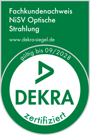 Fachkundennachweis NiSV Optische Strahlung durch die DEKRA zertifiziert